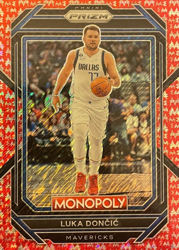 Best Prices Available For Sale of Luka Doncic 2022 Prizm Monopoly #19 Red Money Shimmer /100
