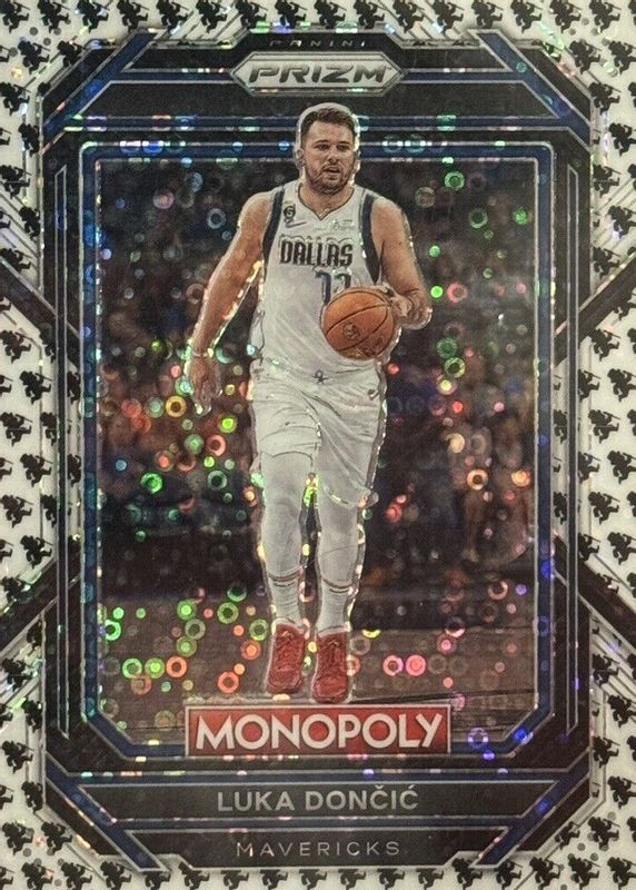 Luka Doncic 2022-23 Panini Monopoly Prizm Running Mr. Monopoly Prizm SSP #19 Mav
