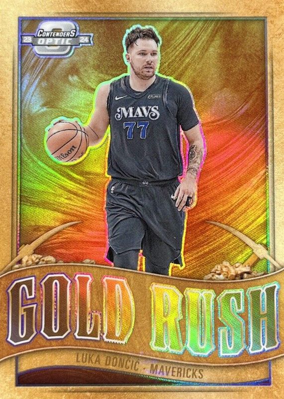 The Luka Doncic 2023 Contenders Optic #3 Gold Rush /(SSP) card in Raw condition has not changed in price in the last 30 days and was last sold for $20.50 .