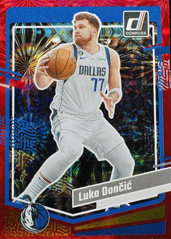 Luka Doncic 2023-24 Donruss Red Fireworks 76/88 #141 Dallas Mavericks