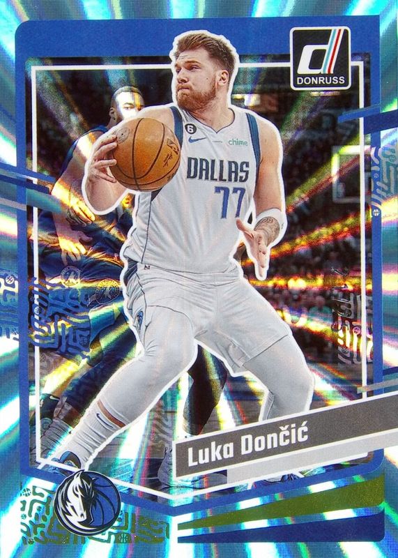 This card is 1 of 26 Luka Doncic's card variations in the 2023 Donruss set being tracked by Sports Card Investor, including Press Proof Purple /199, Holo Laser /149, Holo Orange Laser /125, Choice Red /99, and Holo Purple Laser /99.
