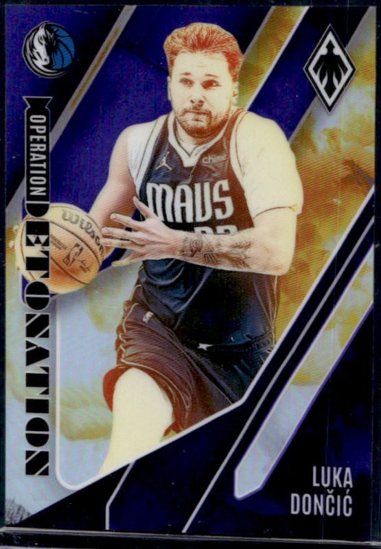 The Luka Doncic 2023 Phoenix #22 Operation Detonation - Purple /75 card is 1 of 207 Luka Doncic's card variations in the 2023 Phoenix set being tracked by Sports Card Investor, including Base, Blue Ice, Color Burst, Dream Weaver, and Hieroglyphs.