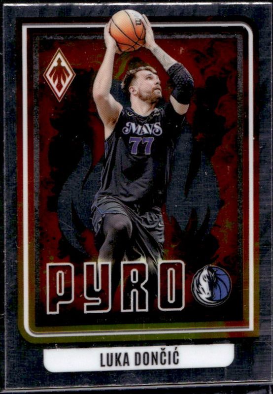 The Luka Doncic 2023 Phoenix #1 Pyro card is 1 of 207 Luka Doncic's card variations in the 2023 Phoenix set being tracked by Sports Card Investor, including Base, Blue Ice, Color Burst, Dream Weaver, and Hieroglyphs.