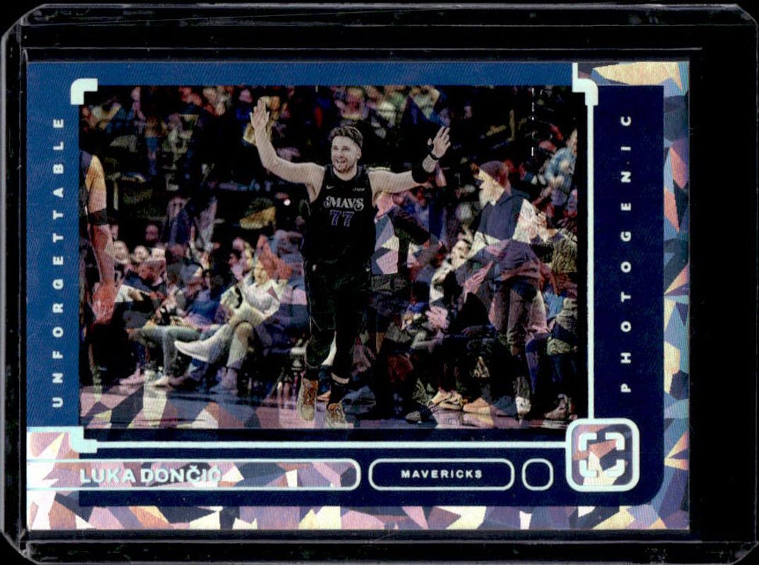 The Luka Doncic 2023 Photogenic #1 Unforgettable - Diamond /75 card is 1 of 45 Luka Doncic's card variations in the 2023 Photogenic set being tracked by Sports Card Investor, including Base, Silver /99, Diamond /75, Wedges /49, and Maze /25.