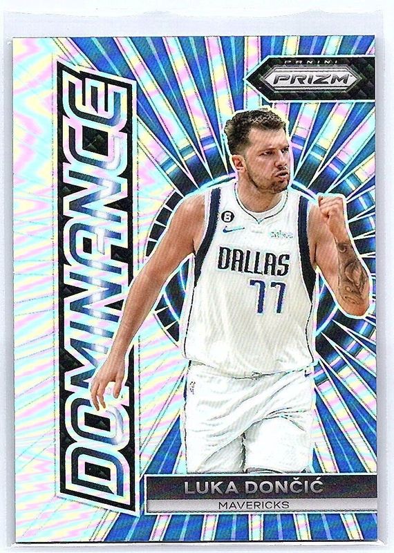 The Luka Doncic 2023 Prizm #2 Dominance - Silver card is 1 of 113 Luka Doncic's card variations in the 2023 Prizm set being tracked by Sports Card Investor, including Base, Blue Wave, Choice Blue Yellow Green, Fast Break, and Green.