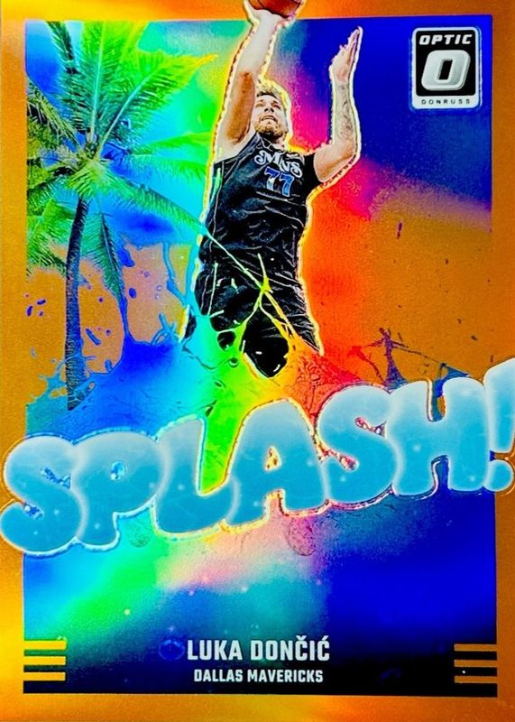 The Luka Doncic 2024 Optic #1 Splash! - Orange /39 card in Raw condition has not changed in price in the last 30 days and was last sold for $46.99 .