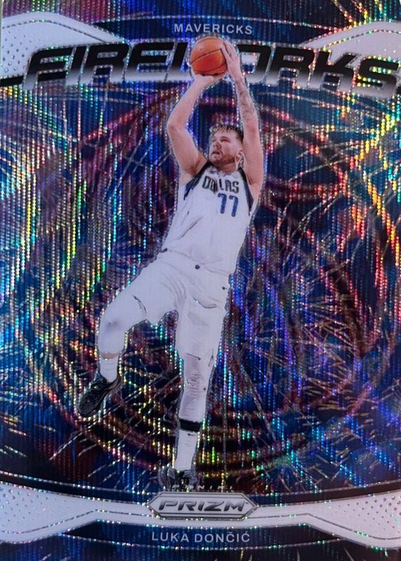Luka Doncic 2024-25 Panini Prizm 08/20 Fireworks SSP White Mavericks #1