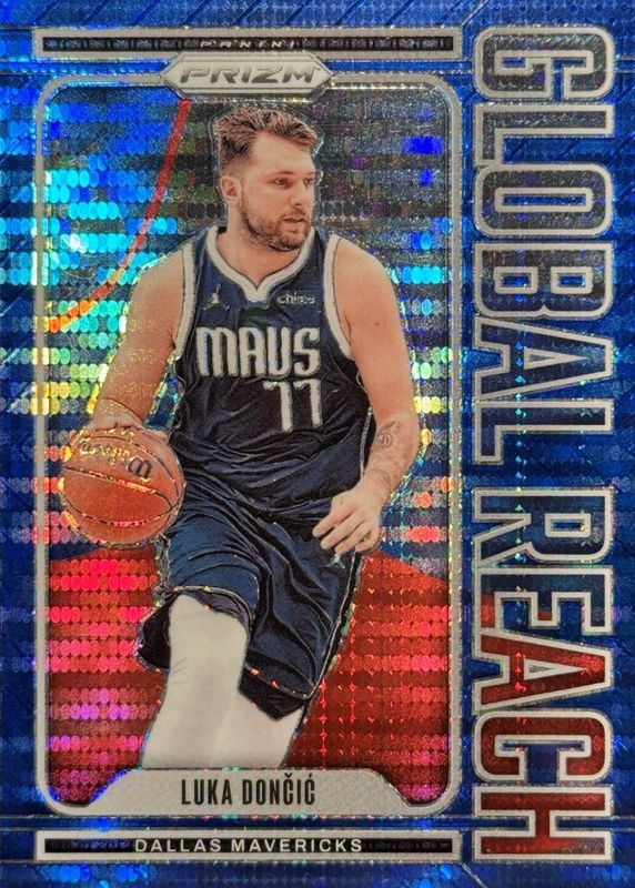 Best Prices Available For Sale of Luka Doncic 2024 Prizm #8 Global Reach - Blue Pulsar /99