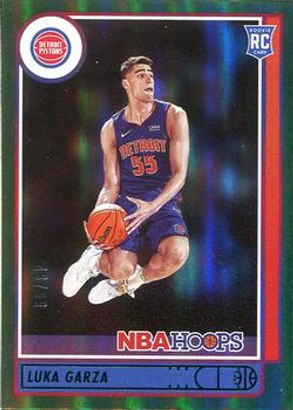 The Luka Garza 2021 Hoops #250 Green /99 Rookie card is 1 of 34 Luka Garza's card variations in the 2021 Hoops set being tracked by Sports Card Investor, including Base, Anniversary Edition, Blue, Green Ice, and Hyper Blue.