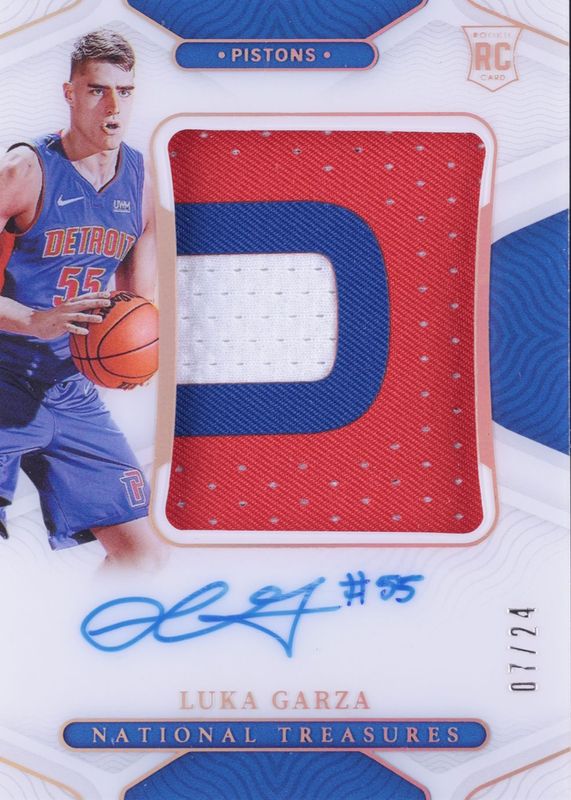 This card is 1 of 10 Luka Garza's card variations in the 2021 National Treasures set being tracked by Sports Card Investor, including Rookie Patch Auto - Bronze (/49), Rookie Patch Auto - NBA 75th (/75), Rookie Patch Auto - Pink (/25), Rookie Patch Auto /99, and Rookie Patch Auto - Gold /10.