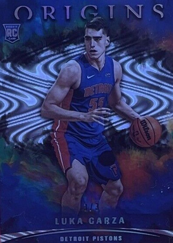 This card is 1 of 37 Luka Garza's card variations in the 2021 Origins set being tracked by Sports Card Investor, including Base, Red, Blue /99, Orange /75, and Pink /60.