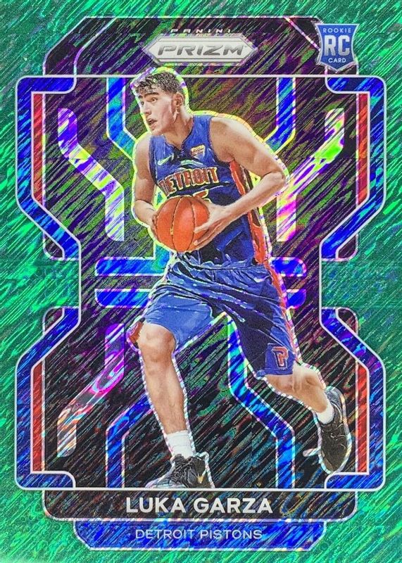 2021-22 Prizm Luka Garza Green Shimmer Prizm Rookie RC #4/5 Pistons