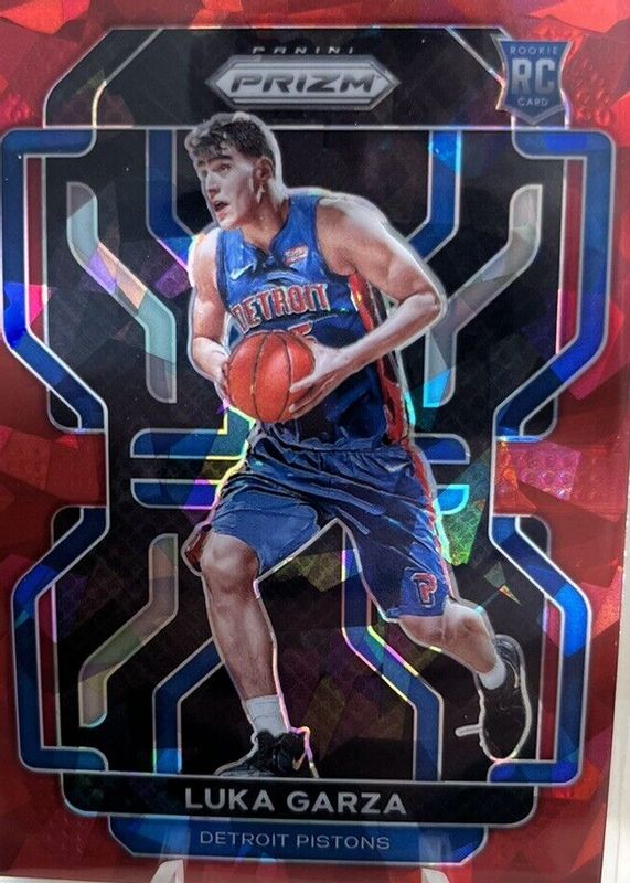 LUKA GARZA 2021-22 Panini Prizm Red Cracked Ice Rookie RC #303 Detroit Pistons