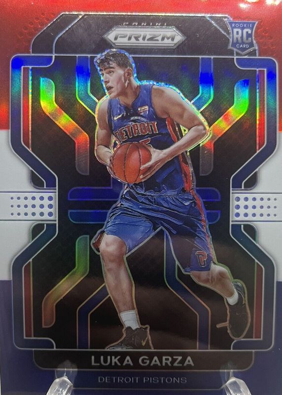 The Luka Garza 2021 Prizm #303 Red White Blue Rookie card in Raw condition has not changed in price in the last 30 days and was last sold for $0.99 .