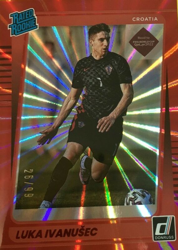 2021-22 Donruss Road to Qatar Holo Red Laser 92/99 Luka Ivanusec Rookie RC