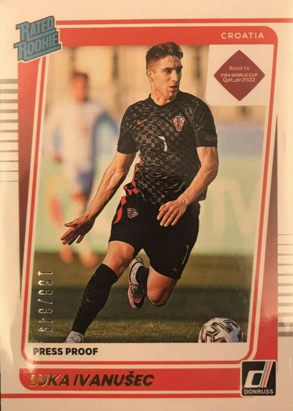 2021-22 Donruss Road To Qatar Luka Ivanusec Rated Rookie Press Proof Gold /349