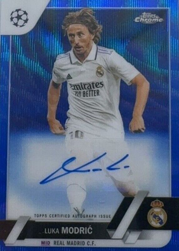 Luka Modric 2022 Topps Chrome UEFA Club Competitions #CA-MO Autographs - Blue Wave Refractor /75 RAW Price Guide
