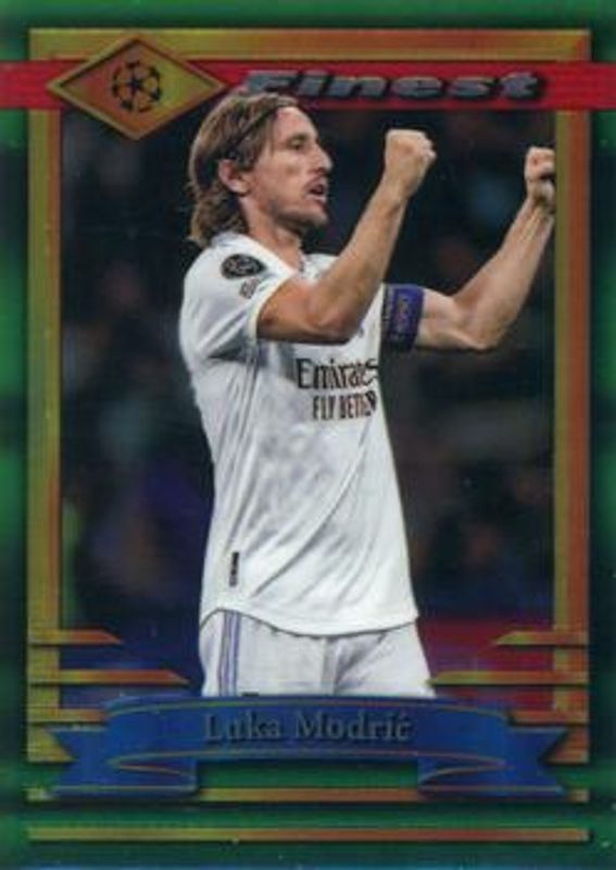The Luka Modric 2022 Topps Finest Flashbacks UEFA Club Competitions #35 Base card is 1 of 8 Luka Modric's card variations in the 2022 Topps Finest Flashbacks UEFA Club Competitions set being tracked by Sports Card Investor, including Refractor, Blue /99, Gold /50, Prism /35, and Purple /15.
