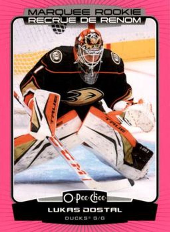 The Lukas Dostal 2022 O-Pee-Chee #554 Neon Pink Border /75 Rookie card is 1 of 23 Lukas Dostal's card variations in the 2022 O-Pee-Chee set being tracked by Sports Card Investor, including Base, Blue Border, Red Border, Retro, and Retro Blank Back.