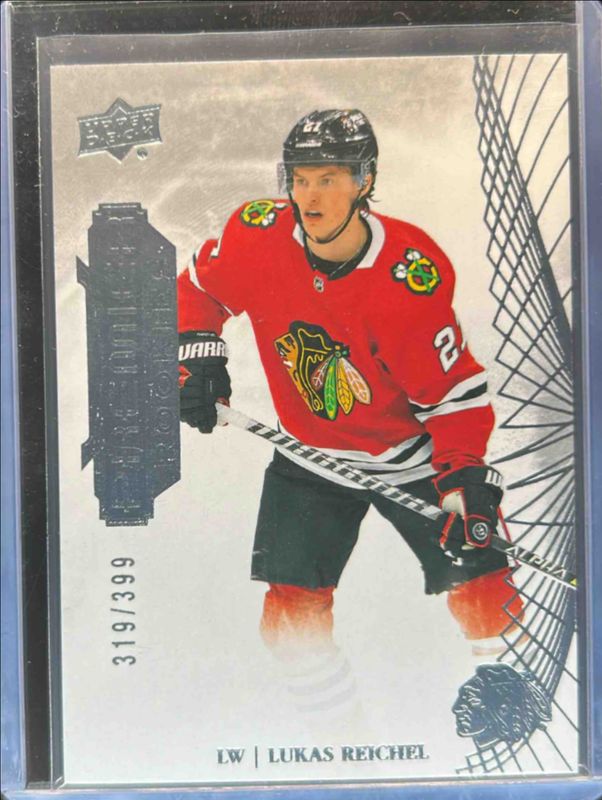 The Lukas Reichel 2022 Upper Deck Premier #125 Base /399 Rookie card is 1 of 39 Lukas Reichel's card variations in the 2022 Upper Deck Premier set being tracked by Sports Card Investor, including Autographs, Jersey, Rookies Bronze /199, Gold /65, and Premium Memorabilia /49.