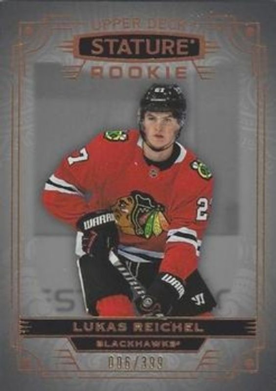 The Lukas Reichel 2022 Upper Deck Stature #153 Base /399 Rookie card is 1 of 48 Lukas Reichel's card variations in the 2022 Upper Deck Stature set being tracked by Sports Card Investor, including Green /99, Photo Variant /99, Red /75, Photo Variant Green /66, and Design Variant /65.