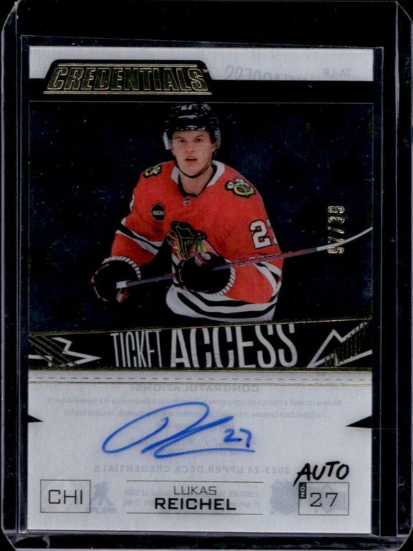 Lukas Reichel 2024 Upper Deck Credentials #TA-LR 2023-24 Update Acetate Ticket Access Auto /10 RAW Price Guide