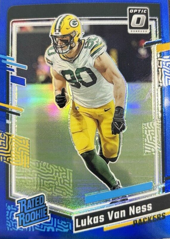 2023 Donruss Optic LUKAS VAN NESS Blue Prizm /199 Rated Rookie #240 Packers SP