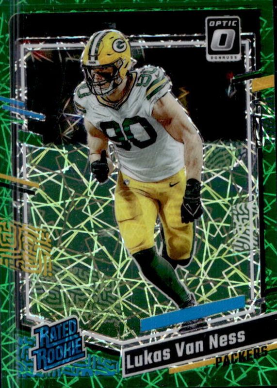 2023 Donruss Optic Lukas Van Ness Green Velocity Prizm Rated Rookie #240 Packers