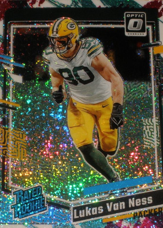 This card is 1 of 53 Lukas Van Ness' card variations in the 2023 Optic set being tracked by Sports Card Investor, including Base, Blue Hyper, Blue Scope, Green Hyper, and Green Velocity.