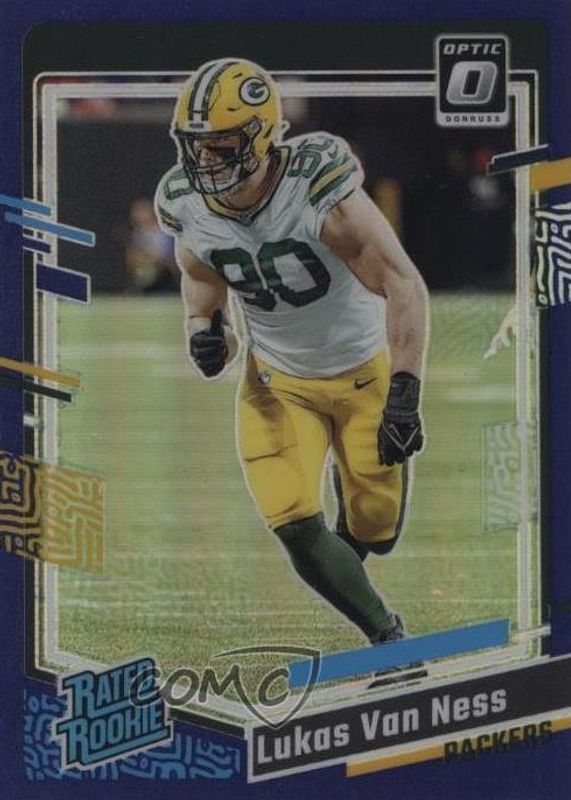 The Lukas Van Ness 2023 Optic #240 Purple /50 Rookie card in Raw condition has not changed in price in the last 30 days and was last sold for $8.00 .