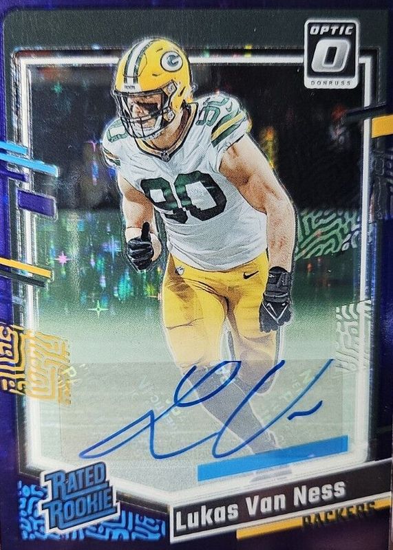 2023 Donruss Optic Lukas Van Ness Rated Rookie Purple Stars Auto /50 RC Packers