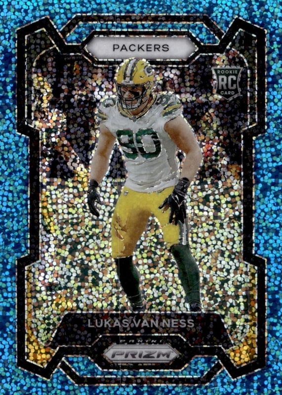 2023 Panini Prizm #336 Lukas Van Ness Blue Sparkle 54/96 Packers Rookie RC