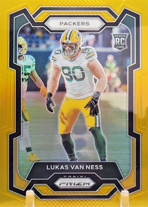 The Lukas Van Ness 2023 Prizm #336 Gold /10 Rookie card in Raw condition has not changed in price in the last 30 days and was last sold for $90.00 .
