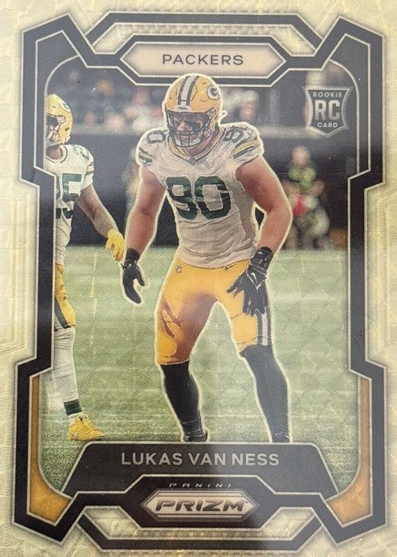 This card is 1 of 73 Lukas Van Ness' card variations in the 2023 Prizm set being tracked by Sports Card Investor, including Base, Disco, Green, Green Ice, and Green Wave.