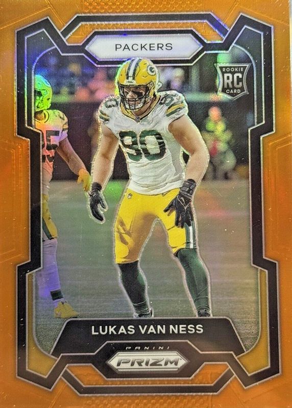 2023 PANINI PRIZM #336 LUKAS VAN NESS ROOKIE ORANGE PRIZM /249 PACKERS RC