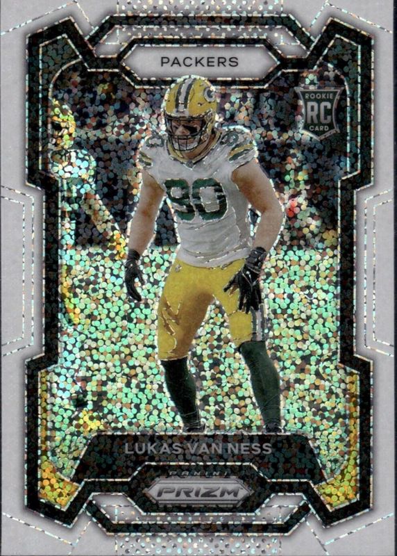 Lukas Van Ness 2023 Panini Prizm White Sparkles SP Rookie RC #336 Packers