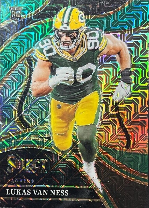 This card is 1 of 42 Lukas Van Ness' card variations in the 2023 Select set being tracked by Sports Card Investor, including Club Level, Club Level Black & Gold Die-Cut, Club Level Black & Green Die-Cut, Club Level Black & Red Die-Cut, and Club Level Disco.