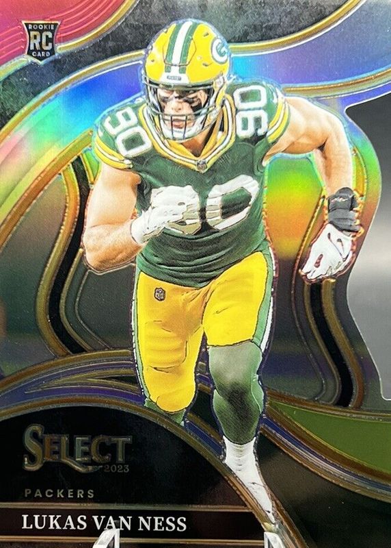 2023 SELECT LUKAS VAN NESS #239 RED YELLOW PRIZM DIE CUT ROOKIE PACKERS SP