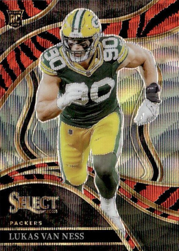 The Lukas Van Ness 2023 Select #239 Club Level Tiger /(SSP) Rookie card in Raw condition has not changed in price in the last 30 days and was last sold for $70.00 .