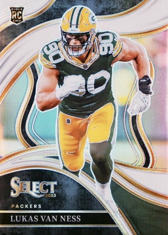 This card is 1 of 42 Lukas Van Ness' card variations in the 2023 Select set being tracked by Sports Card Investor, including Club Level, Club Level Black & Gold Die-Cut, Club Level Black & Green Die-Cut, Club Level Black & Red Die-Cut, and Club Level Disco.