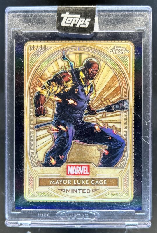 The Luke Cage 2025 Topps Mint #82 Chrome - Black Refractor /10 card is 1 of 16 Luke Cage's card variations in the 2025 Topps Mint set being tracked by Sports Card Investor, including Base, Green Mint Foil /75, Gold Foil /50, Orange Foil /25, and Black Foil /10.
