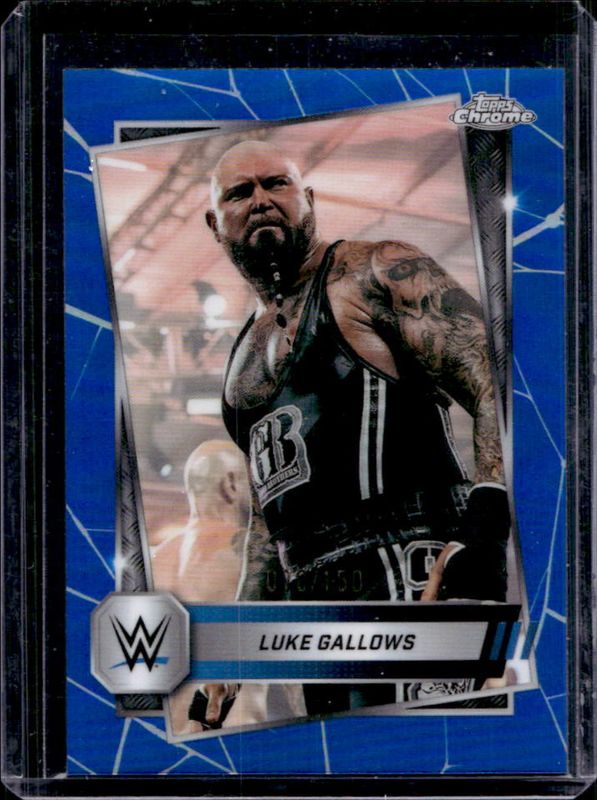 The Luke Gallows 2025 Topps Chrome WWE #155 Blue Refractor /150 card is 1 of 50 Luke Gallows' card variations in the 2025 Topps Chrome WWE set being tracked by Sports Card Investor, including Base, Black & Gold Refractor, Geometric Refractor, Neon Green & Black Refractor, and Pink Shimmer Refractor.