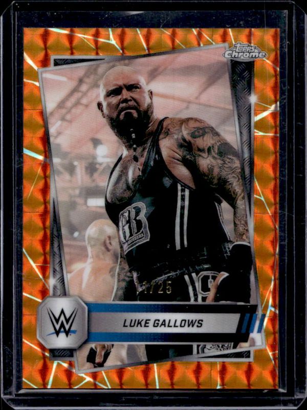 The Luke Gallows 2025 Topps Chrome WWE #155 Orange Geometric Refractor /25 card is 1 of 50 Luke Gallows' card variations in the 2025 Topps Chrome WWE set being tracked by Sports Card Investor, including Base, Black & Gold Refractor, Geometric Refractor, Neon Green & Black Refractor, and Pink Shimmer Refractor.
