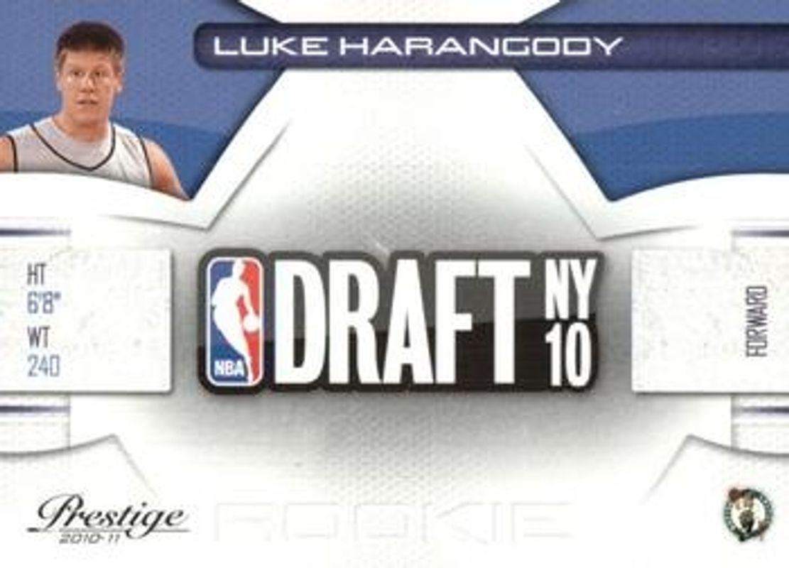 The Luke Harangody 2010 Prestige #33 NBA Draft Class /499 Rookie card is 1 of 29 Luke Harangody's card variations in the 2010 Prestige set being tracked by Sports Card Investor, including #242 Bonus Shots Orange /499, #202 Bonus Shots Orange /499, #202 Bonus Shots Gold /249, #242 Bonus Shots Gold /249, and #242 Bonus Shots Purple /49.