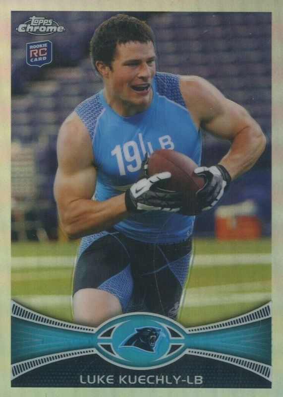 The Luke Kuechly 2012 Topps Chrome #45 Refractor Rookie card in Raw condition has moved up $9.49 (+90.4%) in the last 30 days and was last sold for $19.99 .