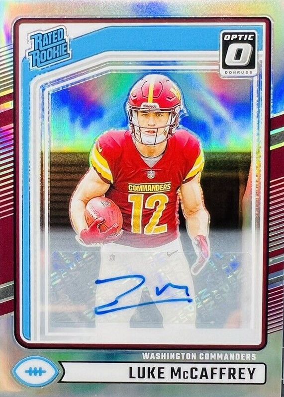 2024 Panini Donruss Football LUKE McCAFFREY RC No. 302 OPTIC PREVIEW HOLO AUTO!
