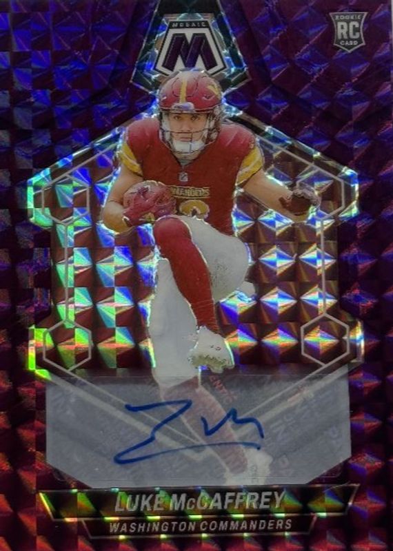 Best Prices Available For Sale of Luke McCaffrey 2024 Mosaic #376 Rookie Autographs - Purple /49