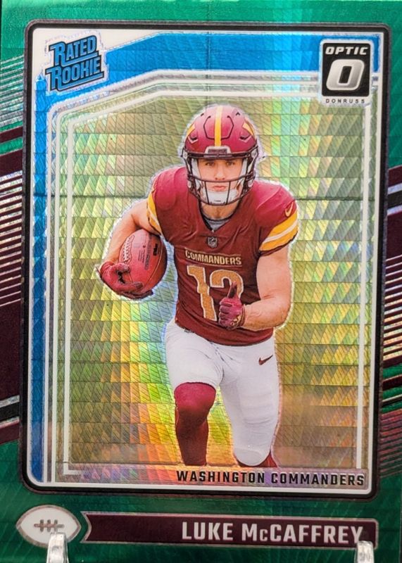 2024 Donruss Optic Luke McCaffrey Green Hyper #268 Rated Rookie Commanders