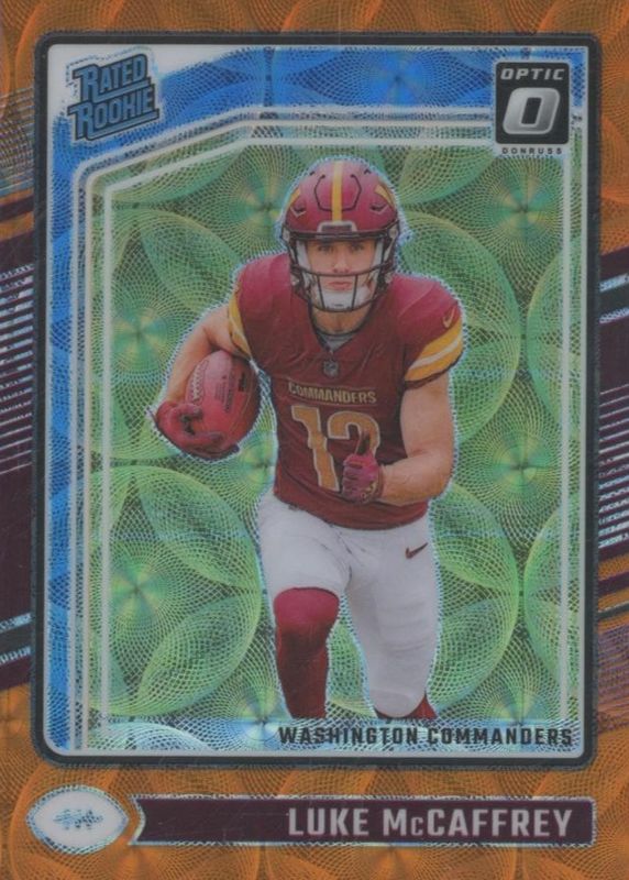 Luke McCaffrey 2024 Optic #268 Orange Scope /79 Rookie RAW Price Guide
