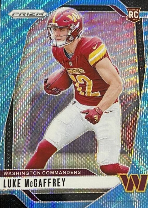 Luke McCaffrey 2024 Prizm #367 Blue Wave /230 Rookie RAW Price Guide
